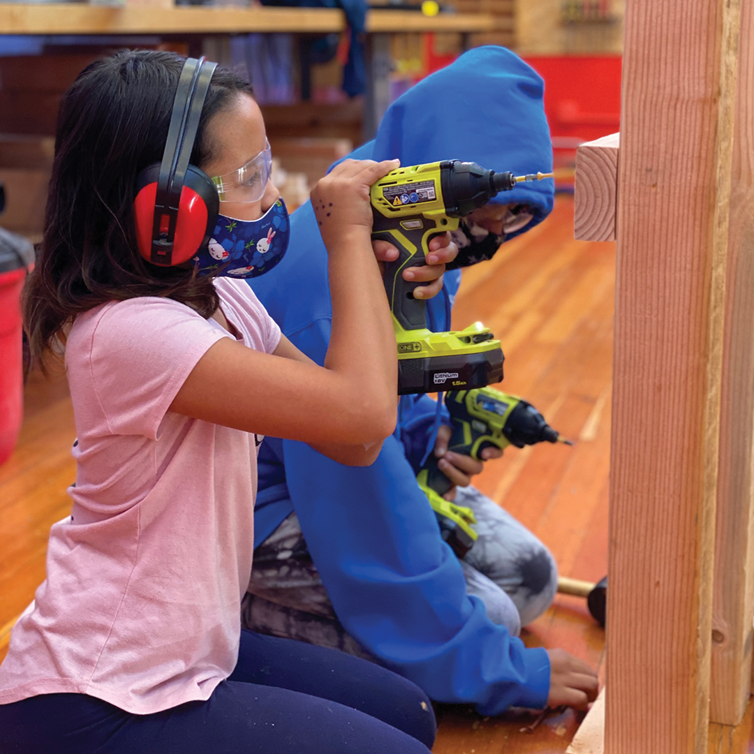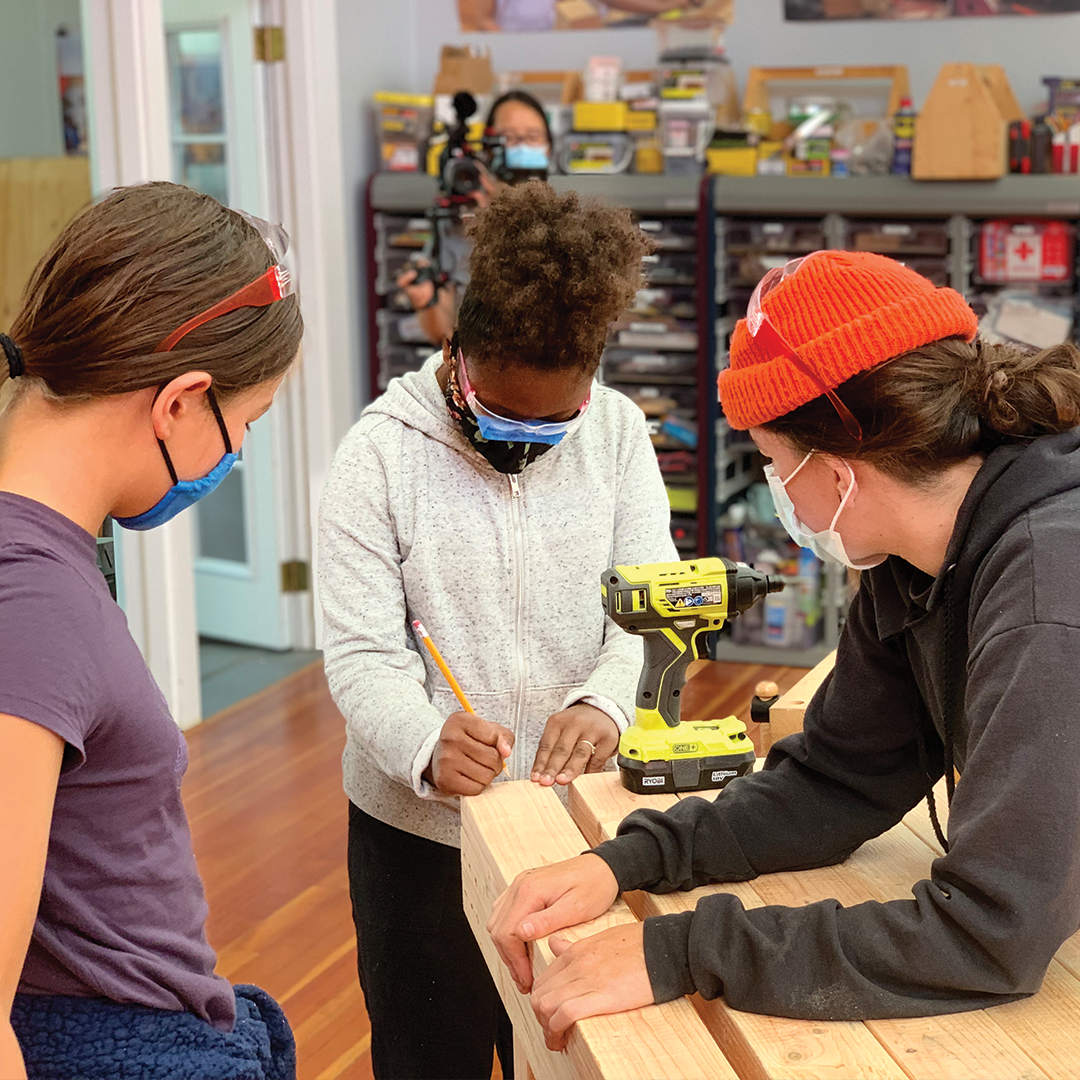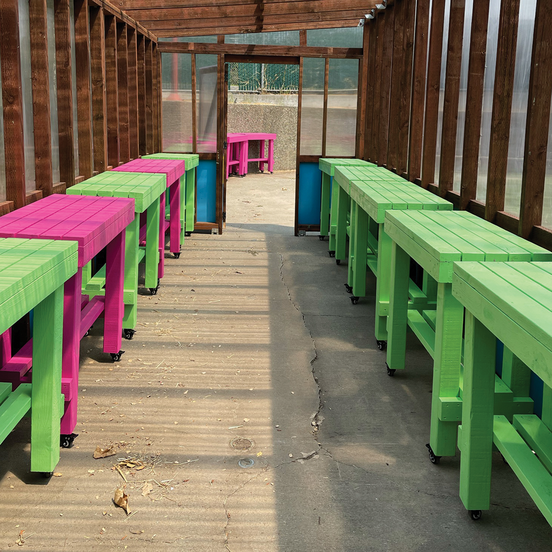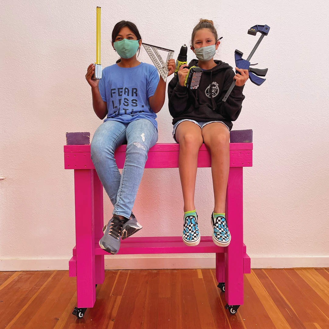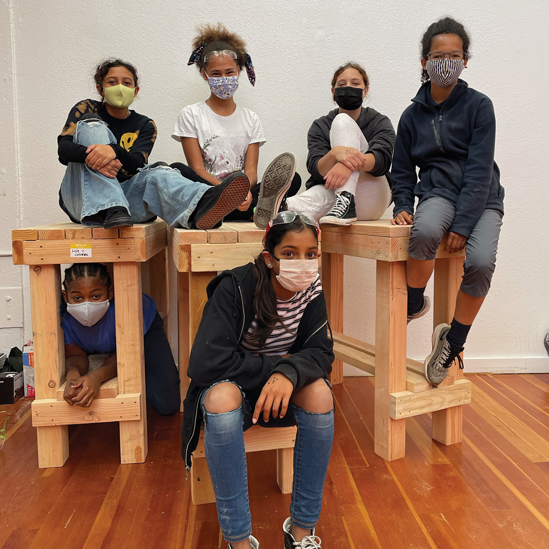Description: Over the course of 3 weeks in summer 2021, our Builder Bootcamp participants built 18 tables for the teen-built greenhouse at Willard Middle School. With instruction and encouragement from Allison Oropallo, Augusta Sitney, and Emily Pilloton-Lam, our young builders learned how to safely use different power toolsâsuch as the chop saw, drill, and impact driverâto construct the greenhouse tables. After building and assembling the tables, the students then used bright exterior paint to weather-proof the lumber and give the tables a bright, cheery finish!