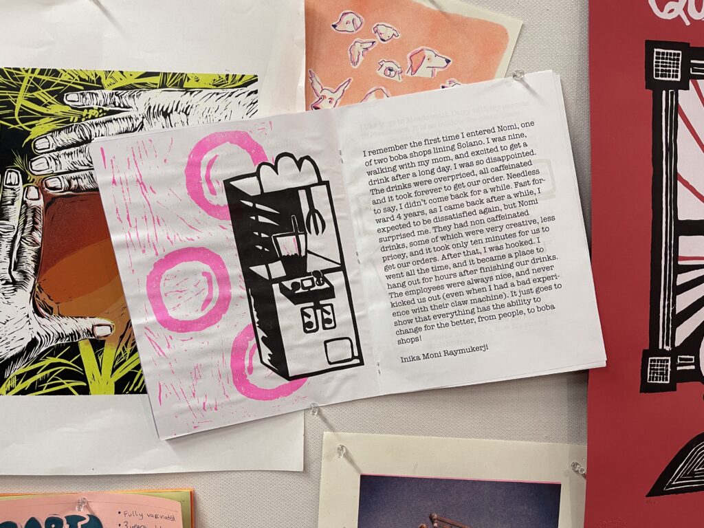 The resulting 24-page riso-printed zine is a beautiful compilation of art, stories, and poems that celebrate beloved local landmarks, memorable experiences, and personal connections to the area. From whimsical portraits of pop culture icons like Andy Samberg on a giant shrimp, to a claw machine at Nomi’s and a charming Victorian home, the zine captures a wide array of the Bay Area’s diverse cultural tapestry in a way that is deeply personal and artistically compelling.