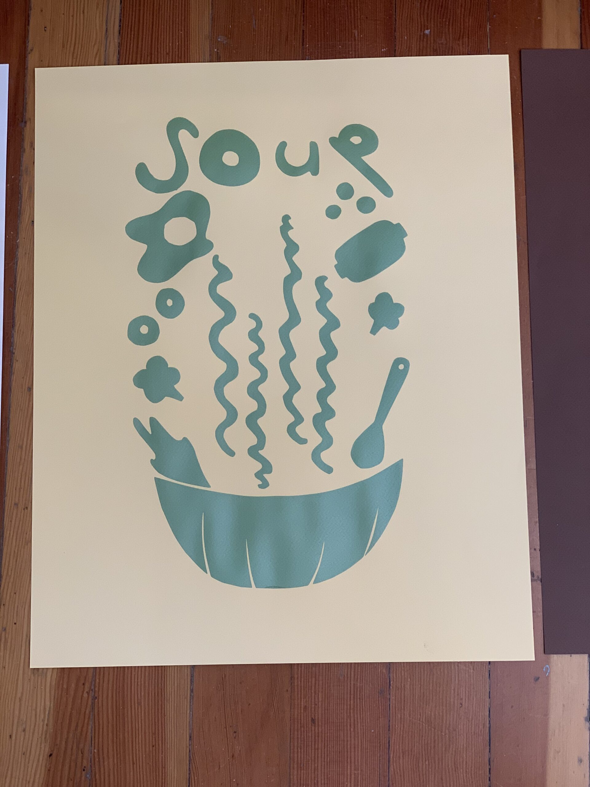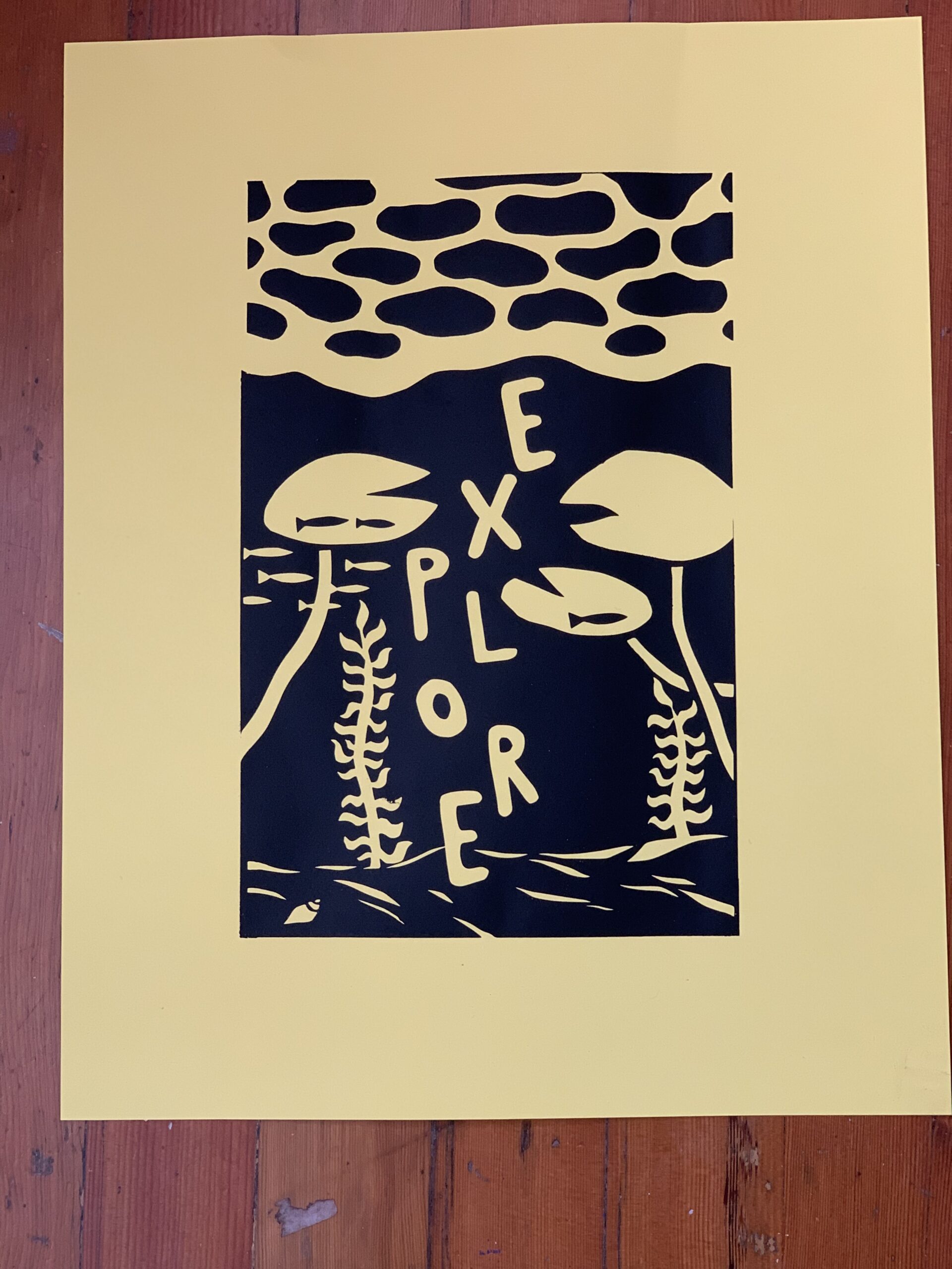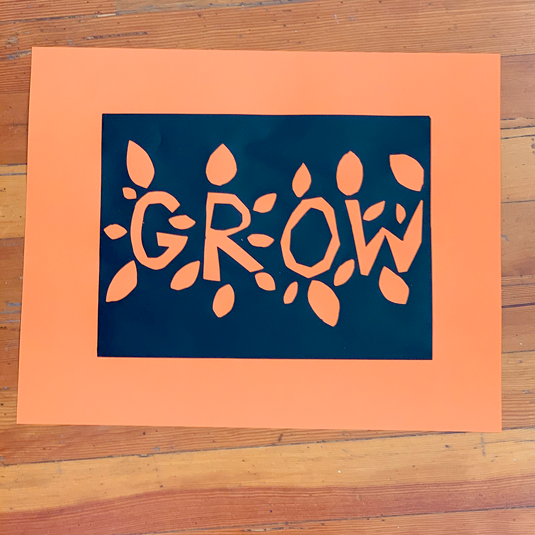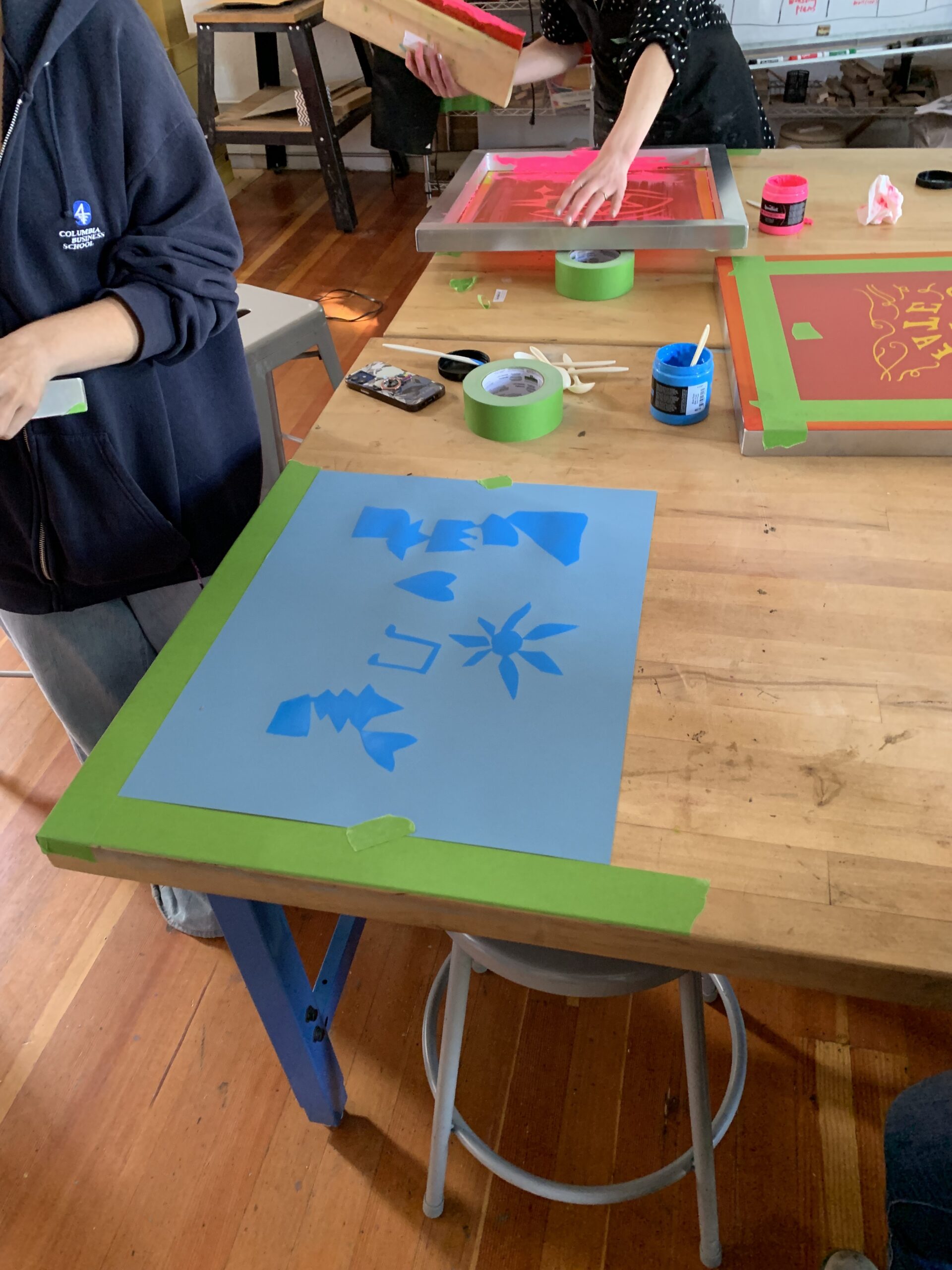 Materials: 11×17 paper, black construction paper, scissors or x-acto knife, glue or tape, screens, screen printing ink, squeegee
