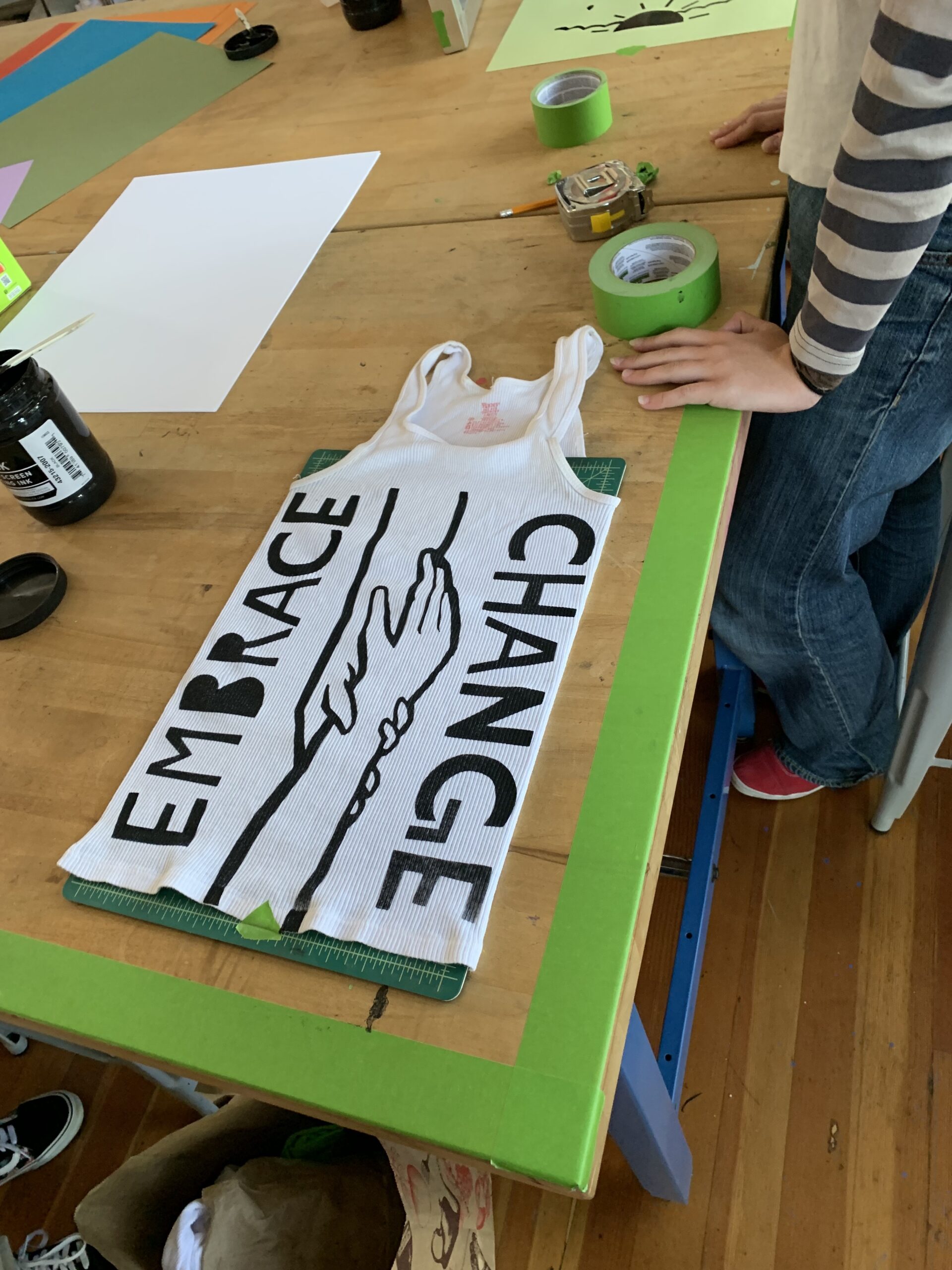 Description: In the spring session, our Protest + Print artists designed multimedia posters to be displayed at the West Berkeley Public Library and the Central Berkeley Public Library. The project began with designs cut from black construction paper which were then burned onto a screen and screen printed in various colorful inks. Each student pulled from different sources of inspiration for their designs, and the folks at the Berkeley Public Libraries were thrilled with the end results. The prints are currently on display in the teen room of the West branch and on the fifth floor of the Central branch.