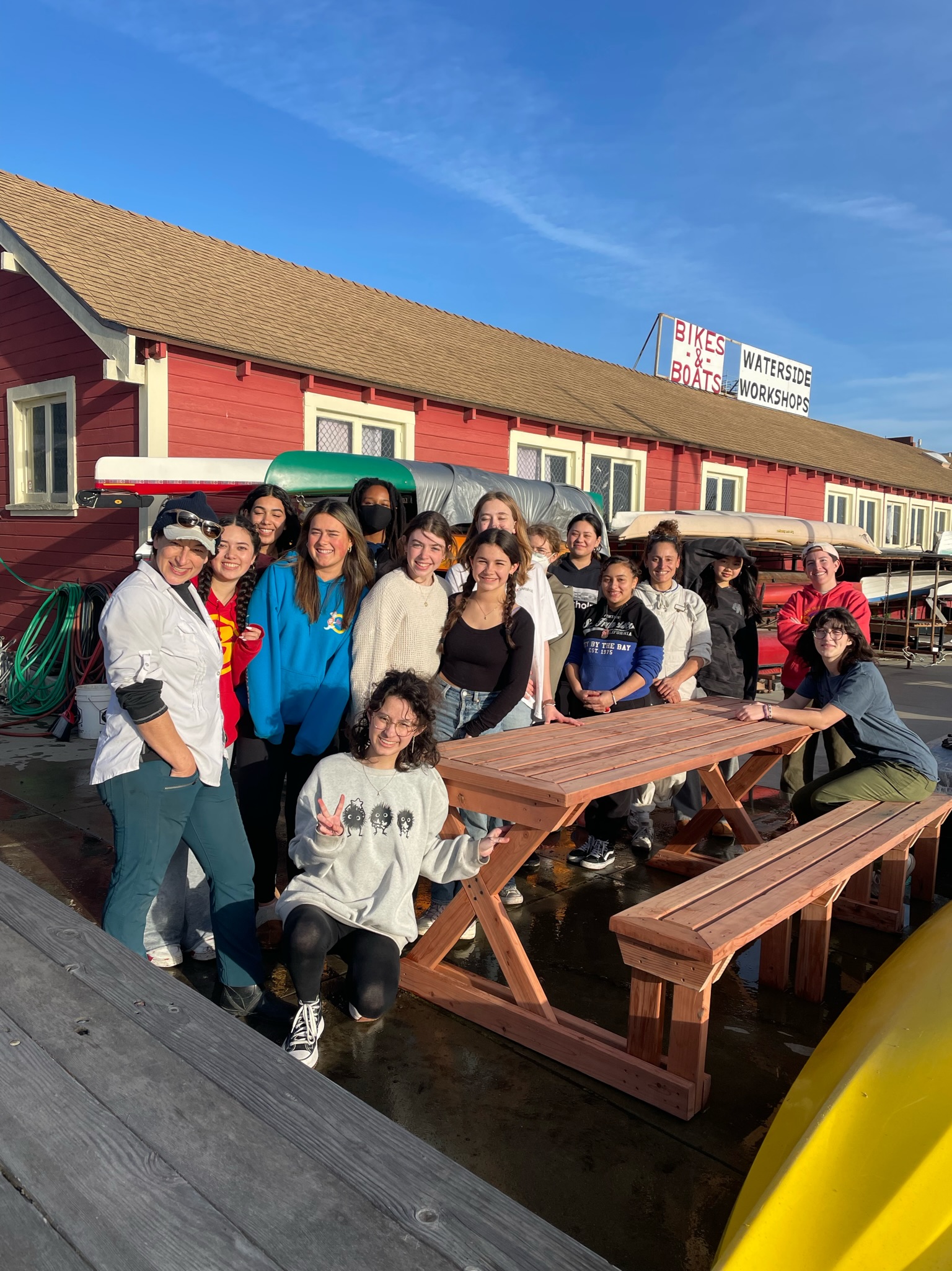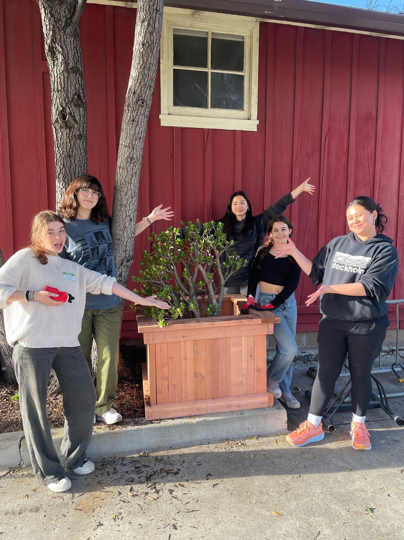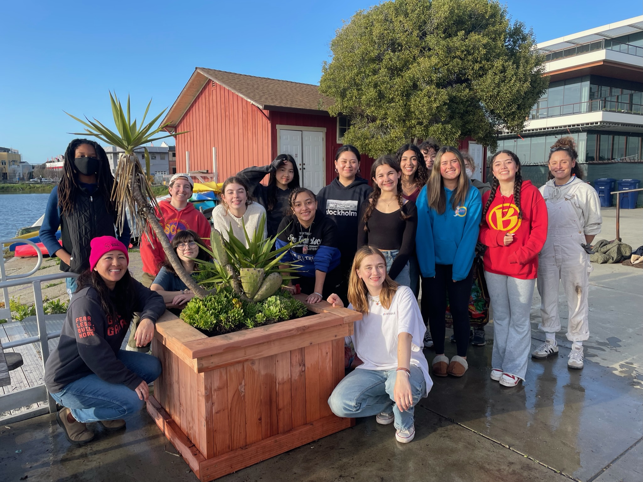 Description: In our first Construction + Community class in our new workspace, our high school builders teamed up with our neighbors down the street, Bay Area Outreach and Recreation Program (BORP), an organization that provides adaptive sports, fitness, and recreation opportunities to people with physical disabilities and visual impairments. BORP tasked our students with a site beautification project: replacing the busted wine-barrel planter boxes with 3 sturdier redwood planters, and building a new ADA-accessible picnic table that could fit 3 wheelchair users on one side. After weeks of building, our students installed the planters and table on the last day of class, repotting the plants and cacti.