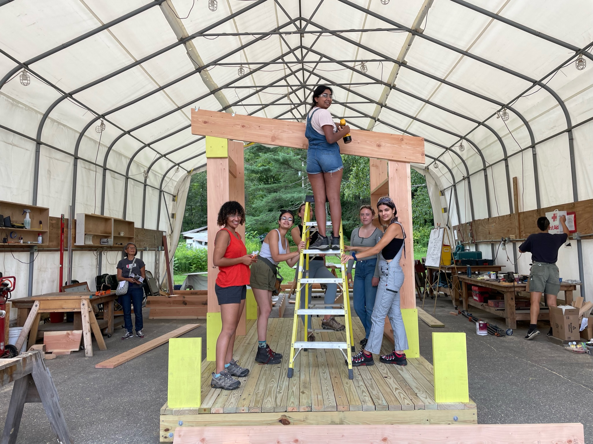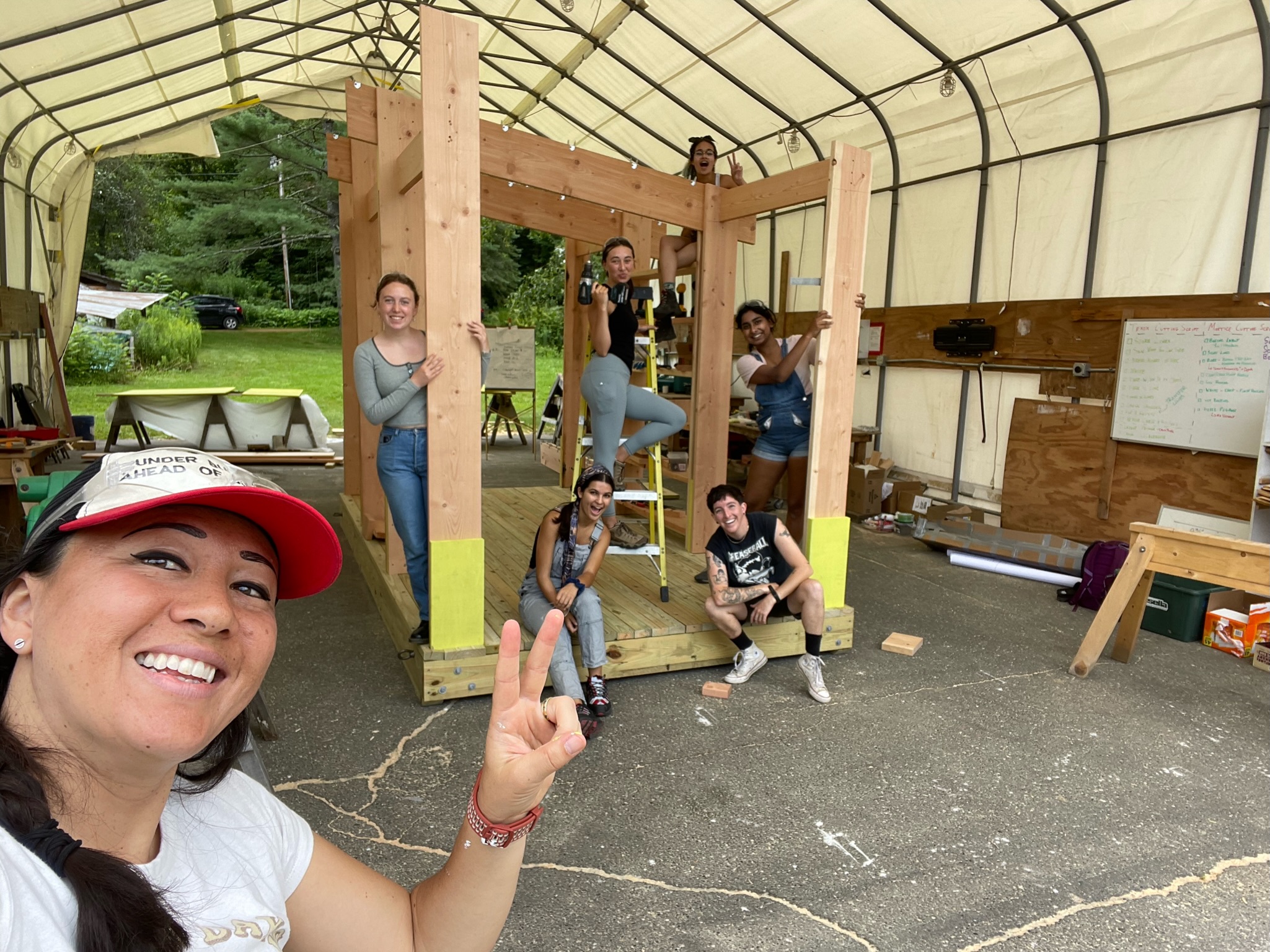 The team: Huge thanks to our Yestermorrow partners and support people: Chrissy Bellmyer and Nick Pattis, and our extraordinary intern, Tyler Anderson! Our own instructional staff included founder Emily Pilloton-Lam, Shop + Project Manager Augusta Sitney, Advanced Design/Build instructor Hallie Chen, architect Tonia Sing Chi, and Emily’s mom, Anna Lam Pilloton. But the core crew was our 12 Advanced Design/Build students, many of whom have been with us since they were 9 years old (half their lives!). This crew is a diverse, committed, compassionate, and unbelievably supportive group of young people how know how to rock power tools, work together, and have fun every step of the way (case in point: our lunchtime limbo breaks).