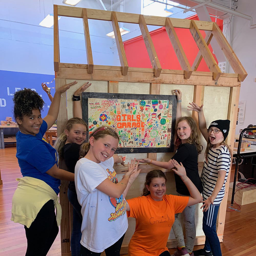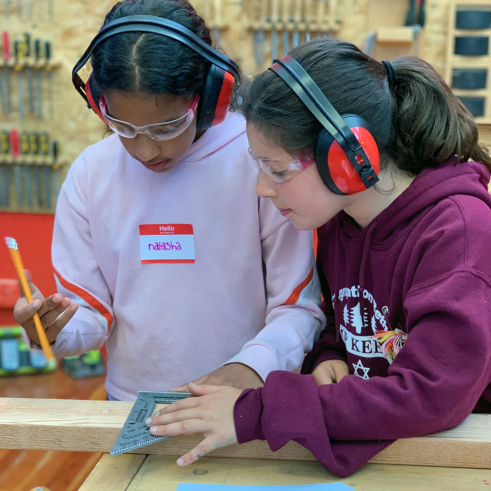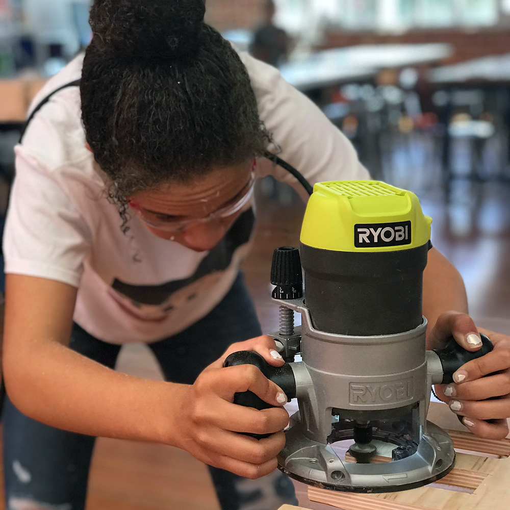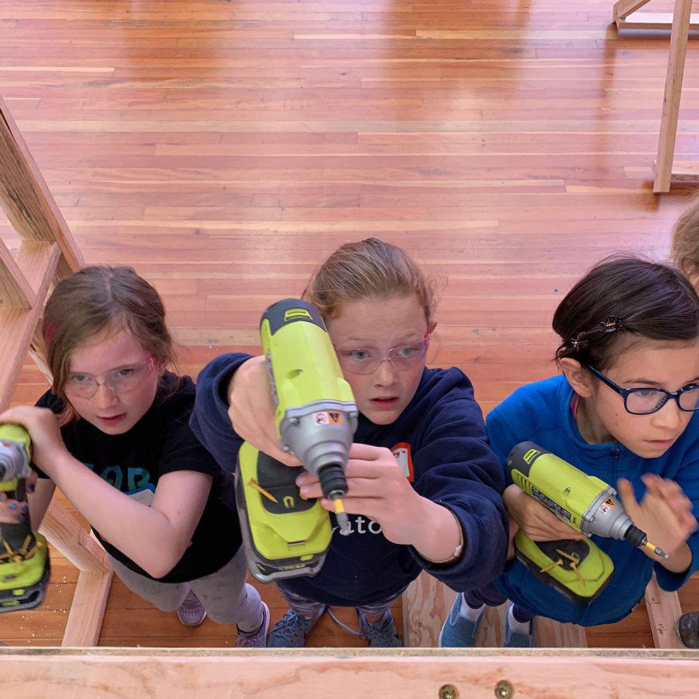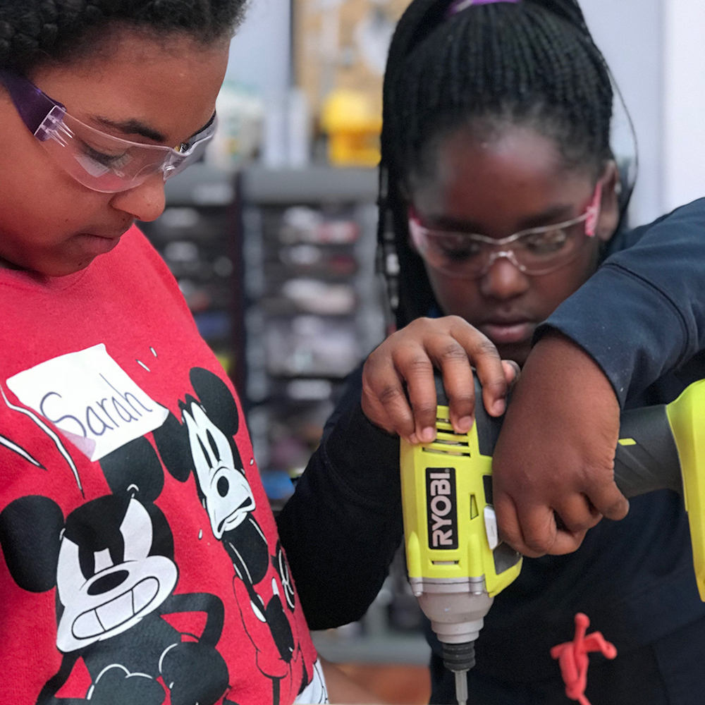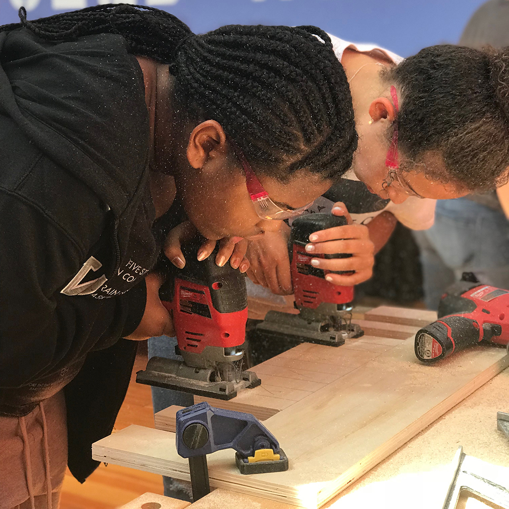 Our Builder Bootcamp program is a week-long, half-day summer camp for girls and gender-expansive youth entering 5th-8th grades! Our work together focus on skill-building and a few take-home wood and metal projects that combine creative construction skills and design challenges in response to social challenges. Led by our team of dedicated female and nonbinary staff, who are carpenters, architects, graphic designers, and lifelong educators, students will learn and apply skills in carpentry, graphic design, metalwork, collaboration, and teamwork. Each day, the cohort of students will be split into two sub-groups, one group working on building activities downstairs in our shop space, and one group working on art activities in our upstairs classroom. Halfway through the day’s programming, the groups switch, so that each student has time both in the workshop and art studio each day. Over the course of the week, students will work on and complete individual and collective projects in multiple media: wood, metal, printmaking, and more. Our instructional pedagogy draws upon decades of experience teaching creative and building-based content. We prioritize safety, socio-emotional well-being, one-to-one support, and practicing bravery together. One snack per day will be provided, and students are encouraged to bring their own additional snacks and water bottle if preferred. Registration cost includes all materials, t-shirt, and of course the final products to take home!