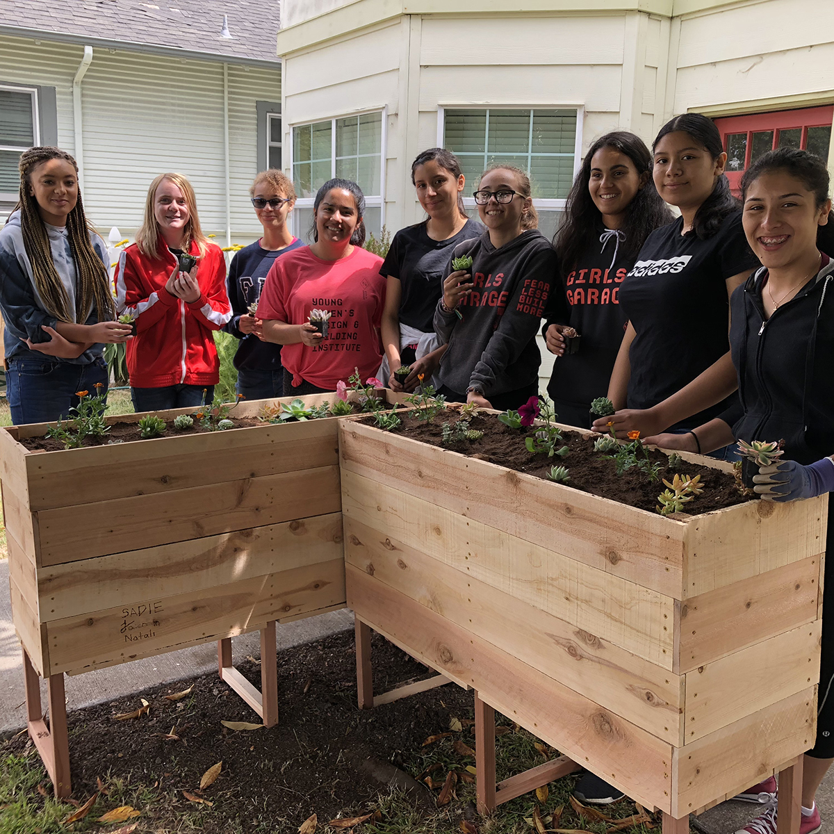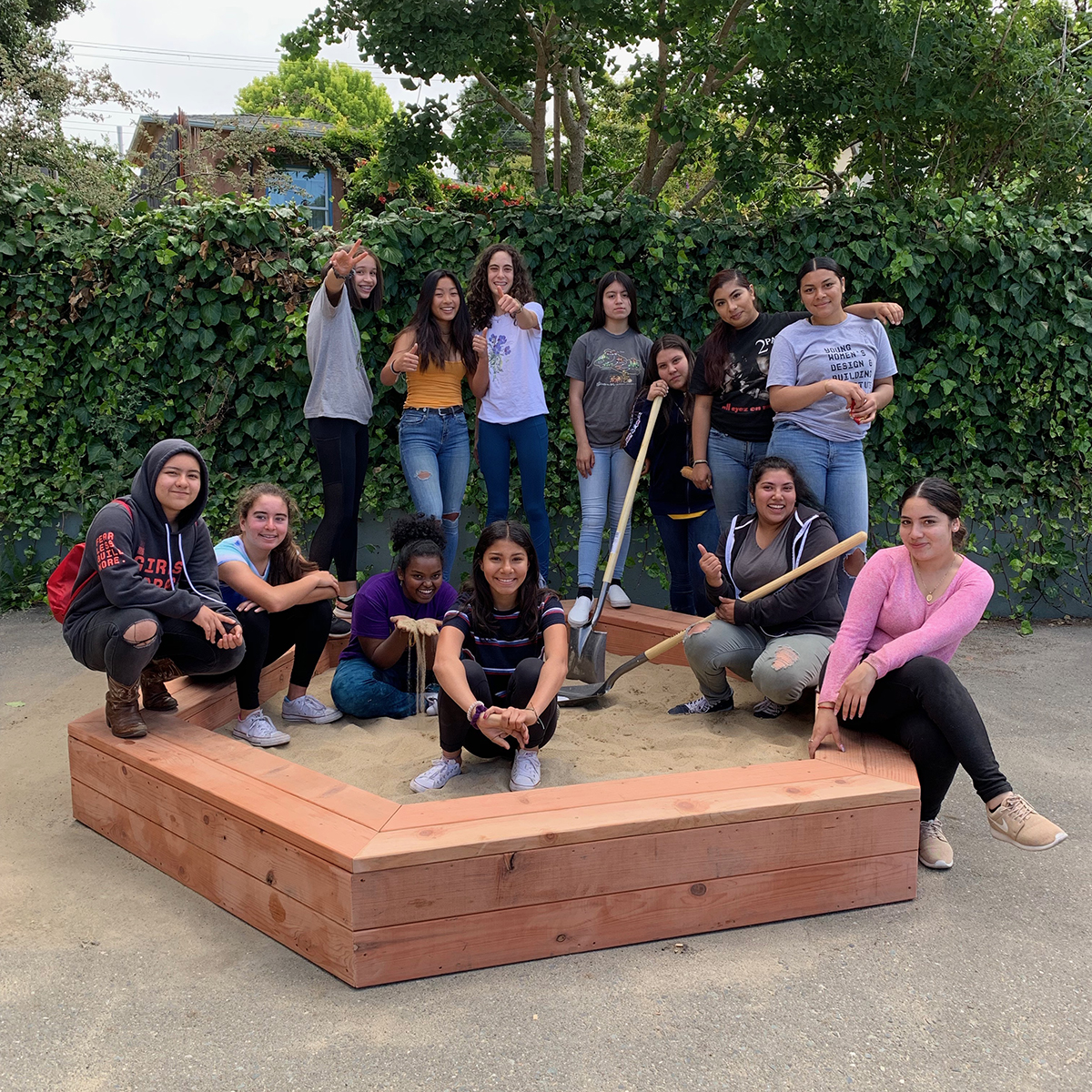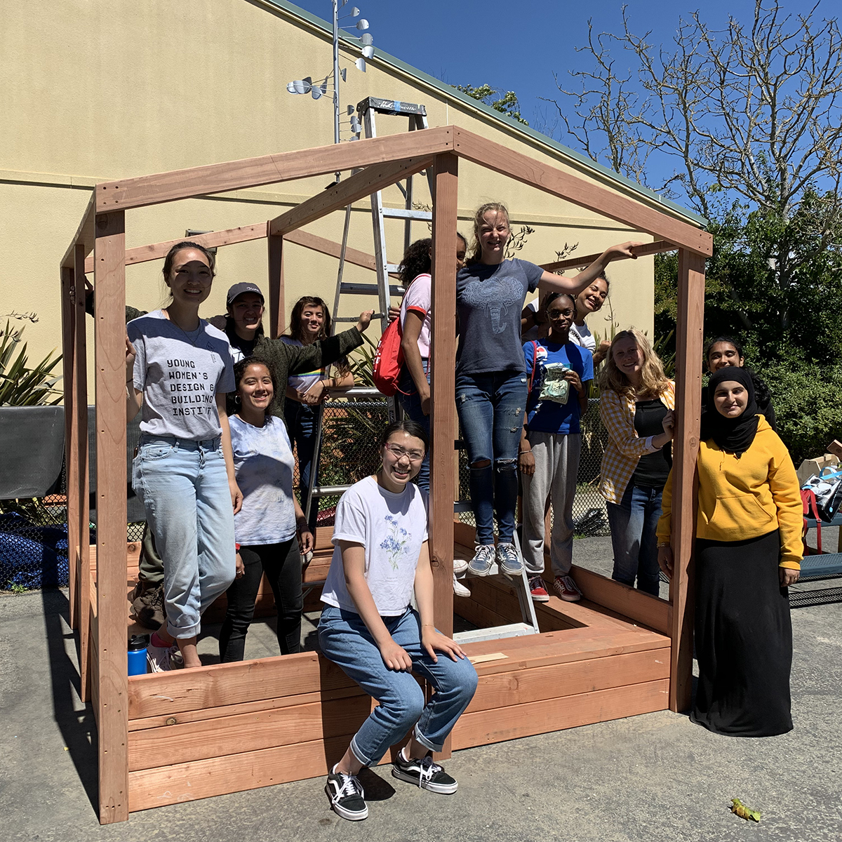 The Young Women’s Design and Building Institute is an immersive week-long design/build experience for rising 9th-12th grade girls and gender-expansive youth. The program brings together diverse cohorts of youth to design and build a real-world project for a local nonprofit client over the course of just a few exciting days. Previous projects have included a parade float for SF Pride, furniture for a nearby homeless shelter, sandboxes and wind sculptures for local preschools, and more. Students will learn and hone creative and vocational STEM skills, from carpentry and welding to applied math, screen printing, and architectural drafting. Our work will be complemented by discussions and readings related to identity, making, and community.