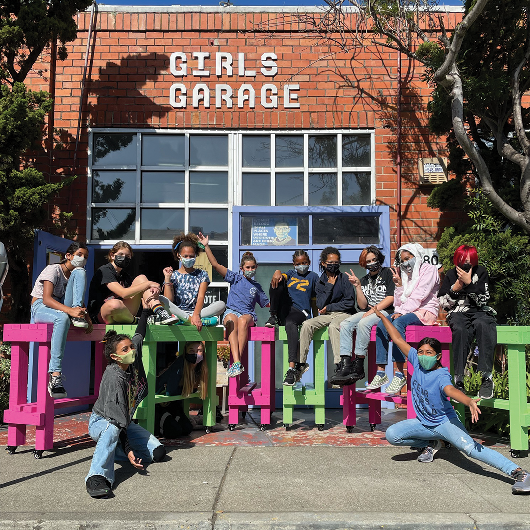 In a year filled with unpredictable twists and turns, 2021 at Girls Garage managed to be incredible! Our girls and gender-expansive youth built beautiful projects for our communities, including a greenhouse, 2×4 benches, a stage, and library furniture. They illustrated cookbooks with family recipes, designed protest flags, and created our first-ever Girls Garage calendar. And that’s just the beginning!