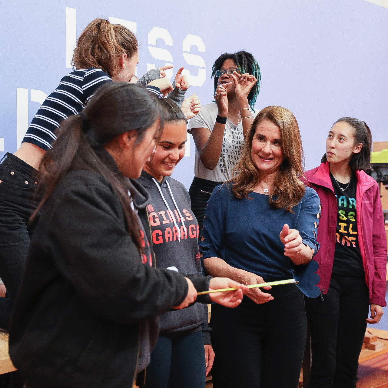 You might be wondering how this moment came to pass! Last year, Girls Garage was invited to partner with Melindaâs new investment and incubation company, Pivotal Ventures. Since then, we have been working directly with her team as she furthers her commitment to increasing female representation in tech and beyond. Our founder, Emily Pilloton-Lam, also personally wrote an essay about for Melinda’s new online community, Evoke, entitled “Girls Garage: Teaching girls to fear less and build more.” So when Melindaâs new book, The Moment of Lift, was published in April, we were excited to hear that she wanted to visit Girls Garage in person before her book event in the Bay Area!