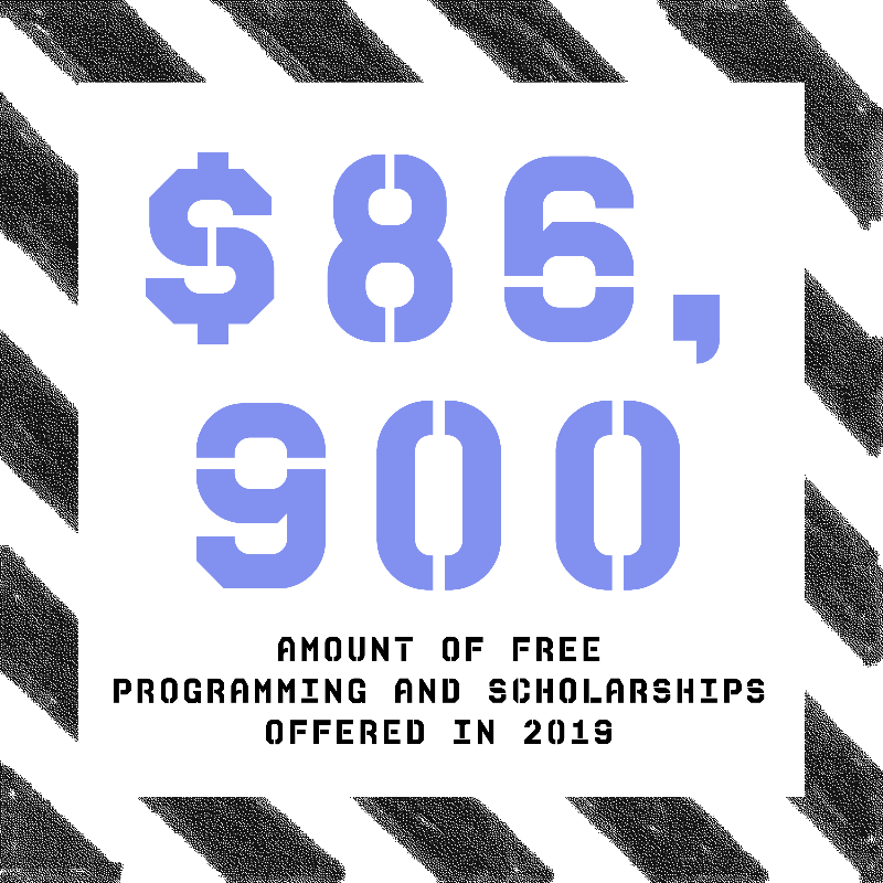 In 2019, we offered 100% free teen programming to all high school girls. We made this decision to demonstrate all-in, blanket support for the balancing act of academics, college applications, jobs, finances, and individual stresses that teen girls and their families face.