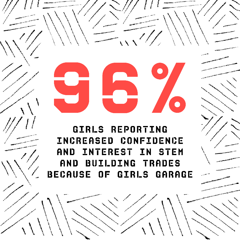 Each year, we publish an impact report that outlines our important work, savors our successes, and shines a spotlight on our amazing community of fearless girl builders, supporters, and staff. 2019 was our biggest and boldest so far: we enrolled nearly 200 girls, committed to offering all our teen programming at no cost, exceeded our annual budget projection, built ambitious architectural projects for local nonprofits on schedule and under budget, and established community partnerships that connect our girlsâ skills to real-world impact. We are so excited to share this recap with you!
