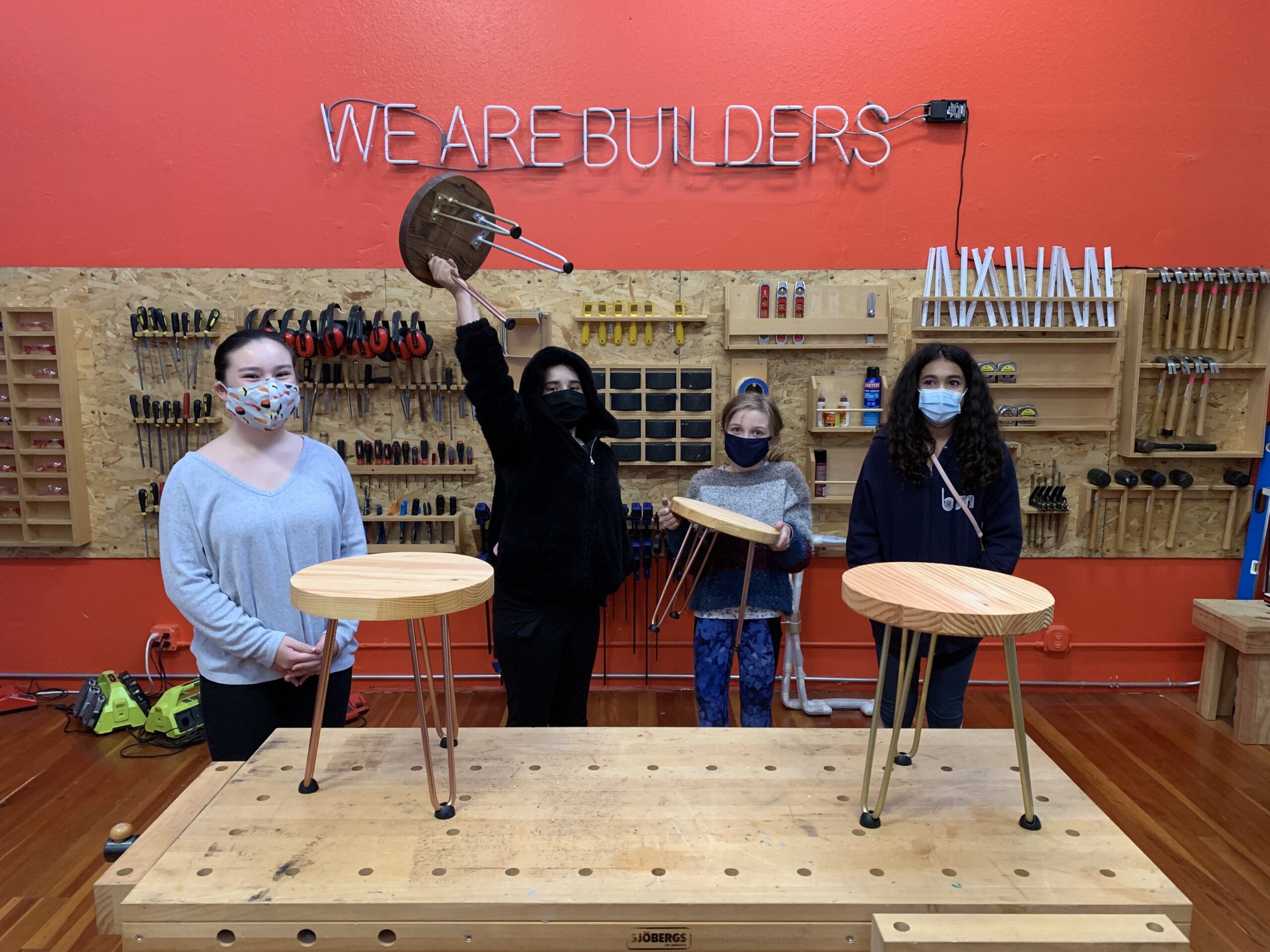 The winter session absolutely flew by. Each week, we watched our fearless girls tackle design, building, and creative challenges (after a full day of Zoom school, no less!). Whether they were cutting fabric letters or MIG-welding hairpin legs, they demonstrated the bravery and gusto that we all could use a little more of right now. We’re excited to see so many familiar faces in our upcoming spring session, as well as welcome new ones!